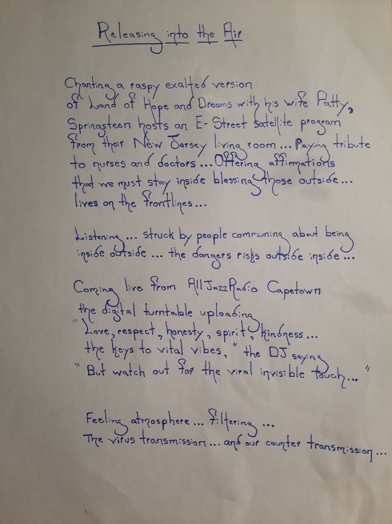 Powe’s lyrics form part of his book Ladders Made of Water, published by Stream Elsewhere Press (2023). It is the second book of a trilogy, which began with The Charge in the Global Membrane (2019) and is to be completed with the to-be-published Mysteria (2024). Ladders Made of Water offers the immediacy of the visionary Canadian poet, philosopher, essayist, and scholar’s work.